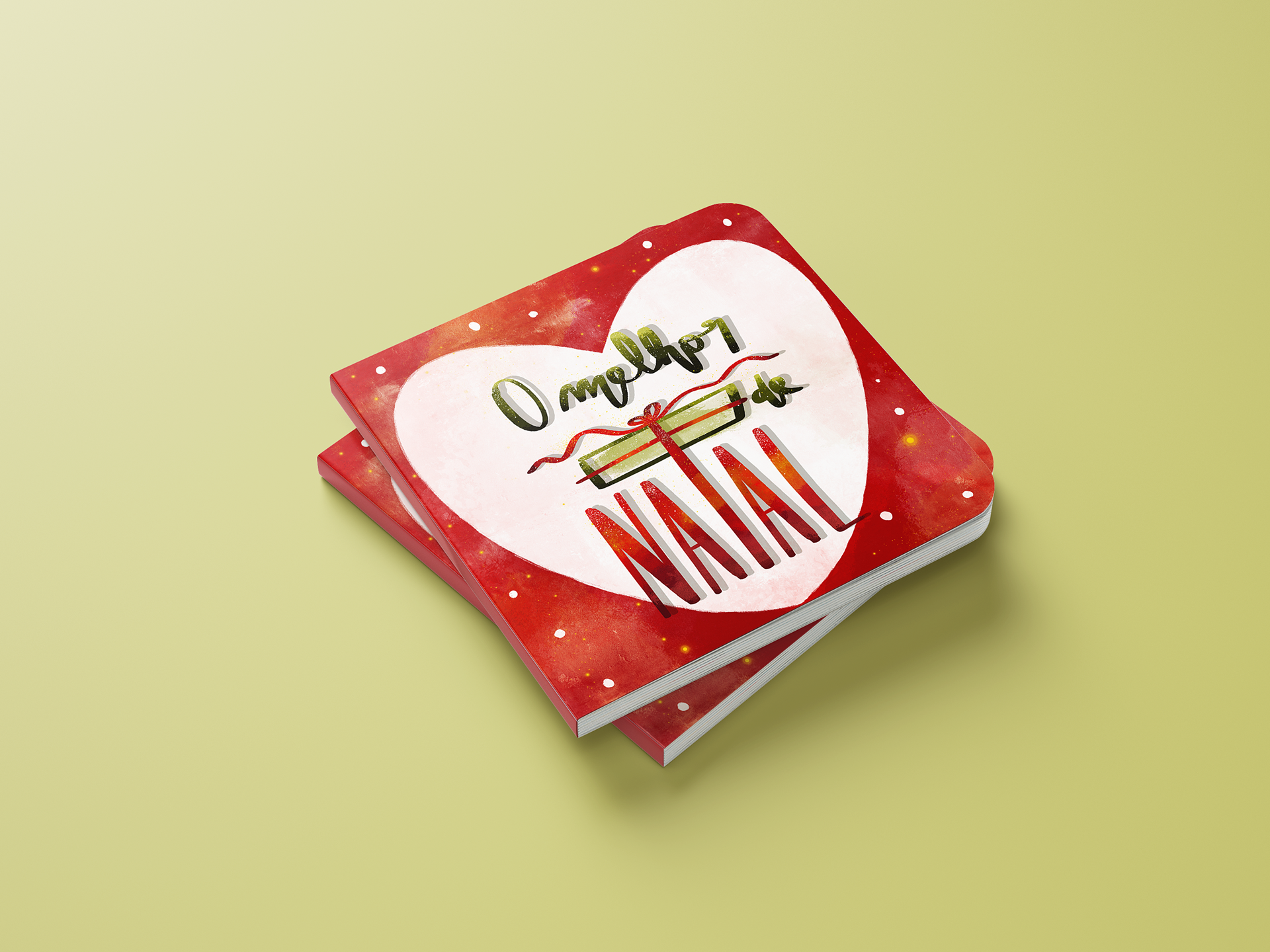 Na capa utilizei o lettering fazendo uma graça com a palavra natal e a caixa de presente. A letra "T" forma uma cruz. O laço desatado do presente forma o início de um nome. E então já descobriu qual o melhor presente de Natal da Sofia?