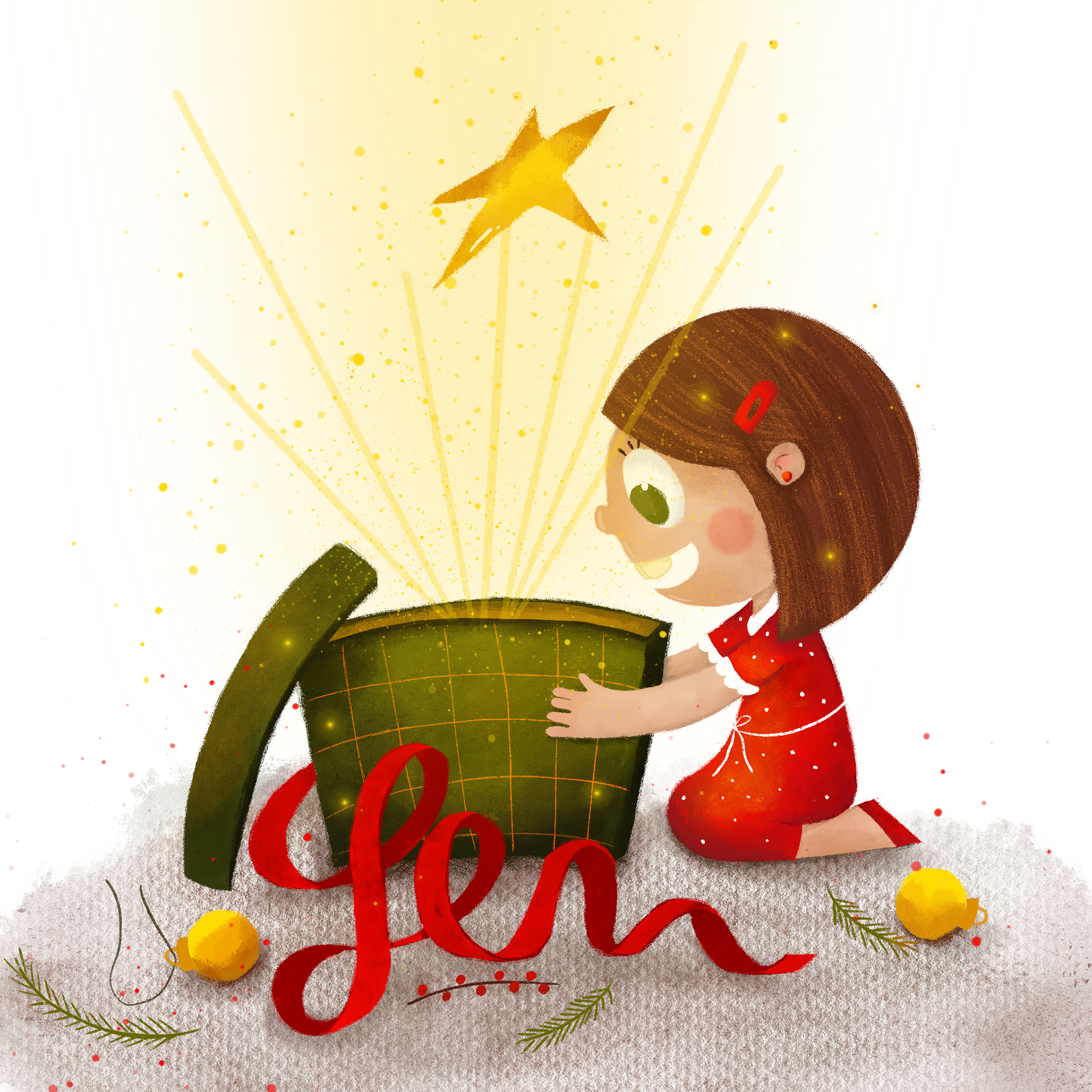 On the cover I used the lettering making a joke with the word Christmas and the gift box. The letter "T" forms a cross. The untied present loop forms the beginning of a name. And so you already found out which is the best Christmas present from Sofia?