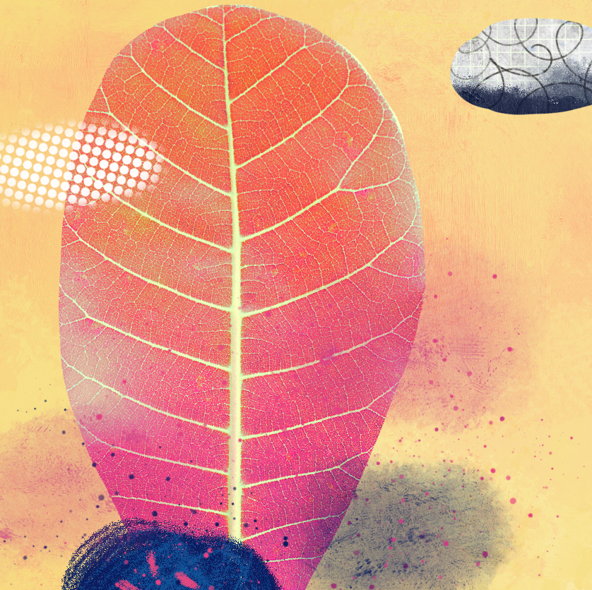 [PT/BR] Nas colagens utilizei fotos que havia tirado de folhas, tronco de árvore e flores.