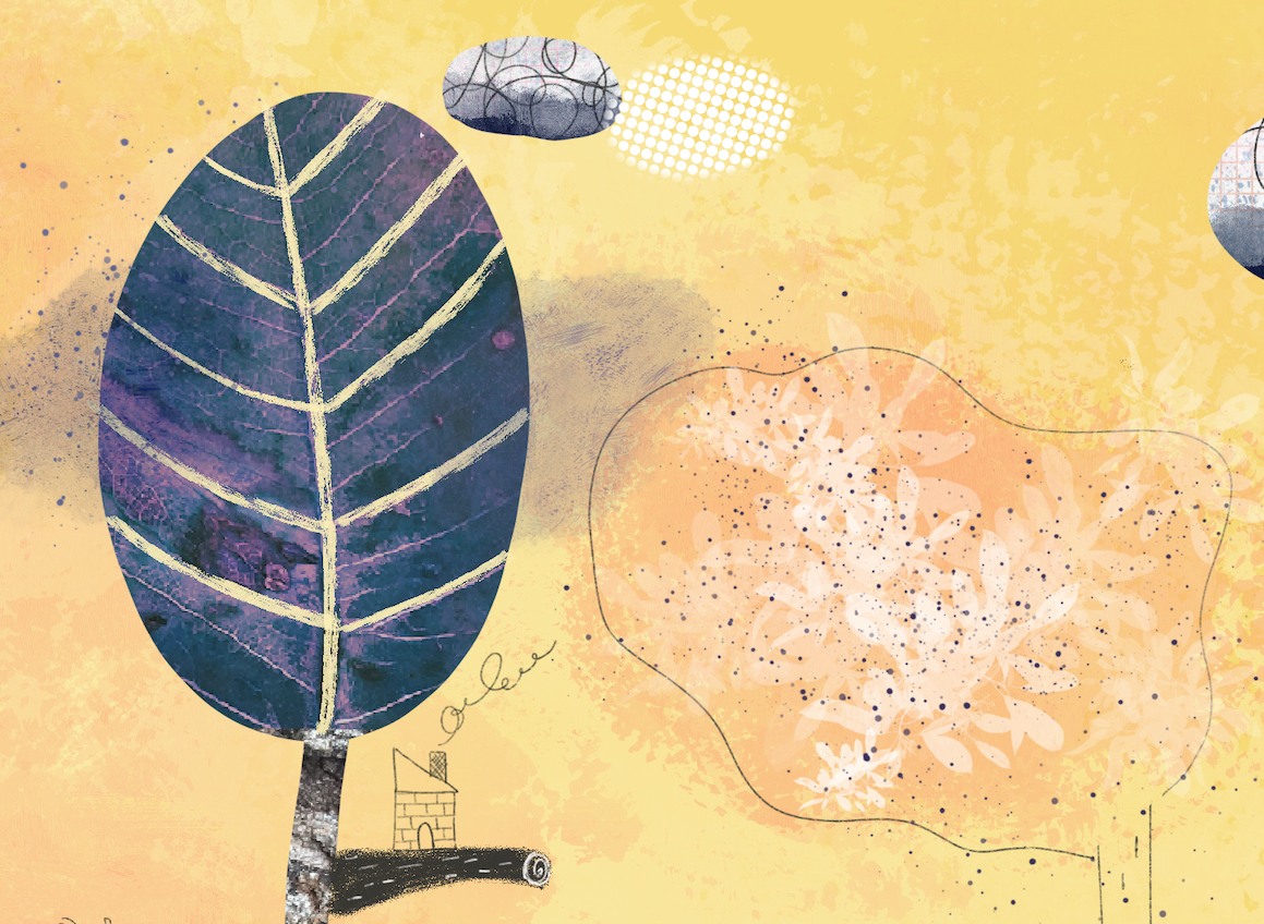 [EN] In the collages I used photos I had taken of leaves, tree trunks and flowers.