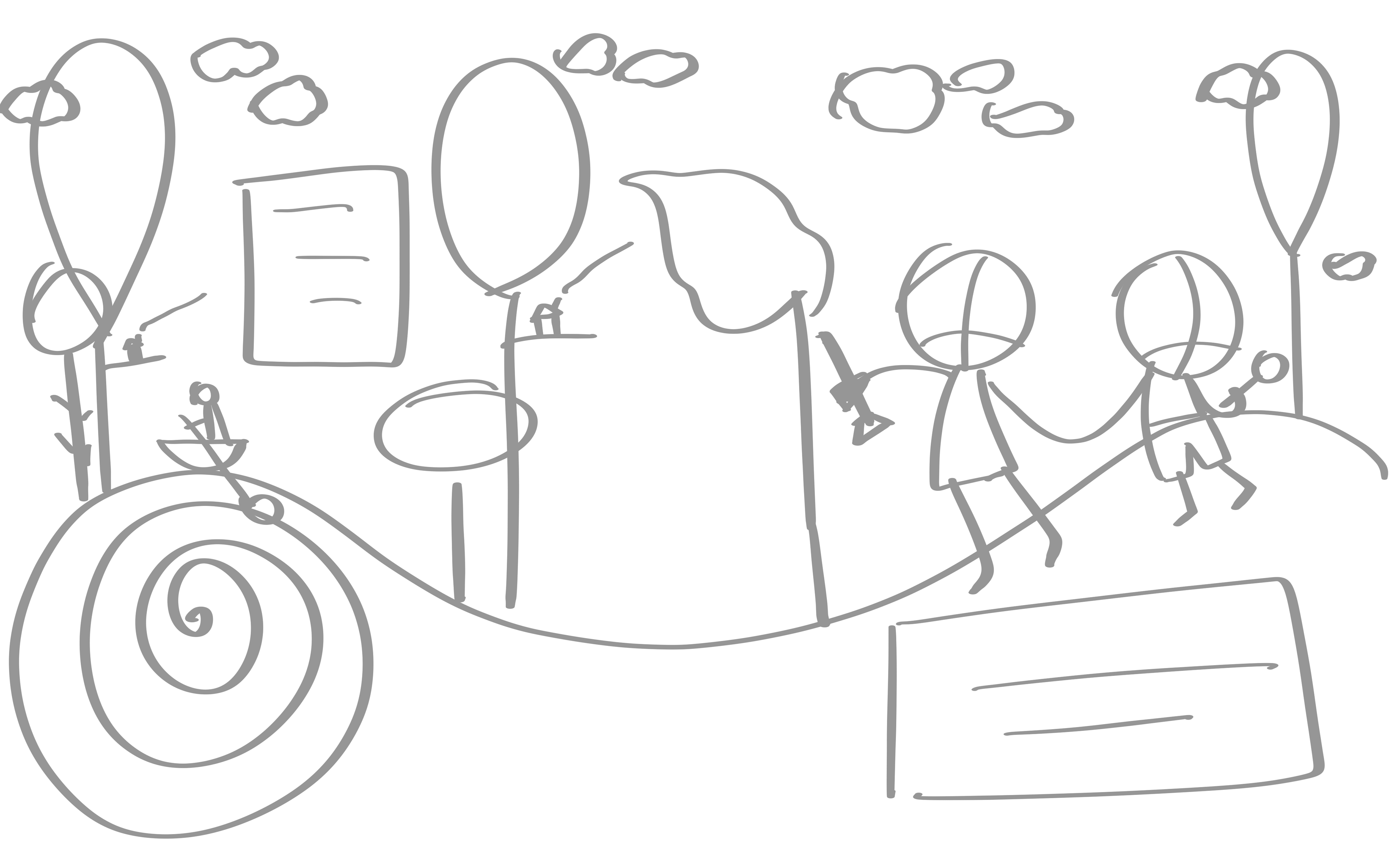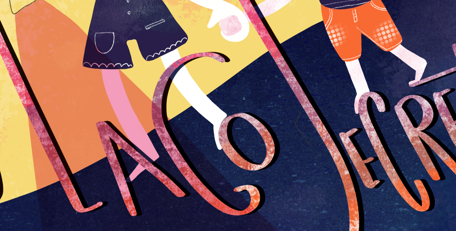I dared to experiment with collage and mix up some sketches as part of the final project. I designed the title using the lettering technique and positioned the characters so that they would step on top of it, bringing interaction between them. For the color palette I chose tones that conveyed joy and mystery.